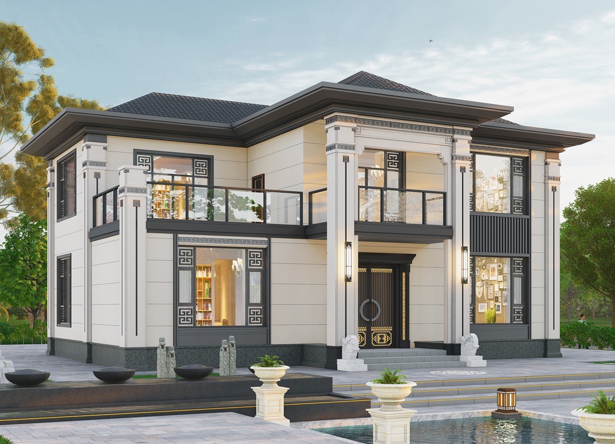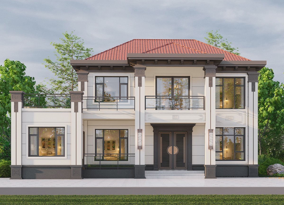 威海005 两层新中式(11.36x11.76米)-【易设计】