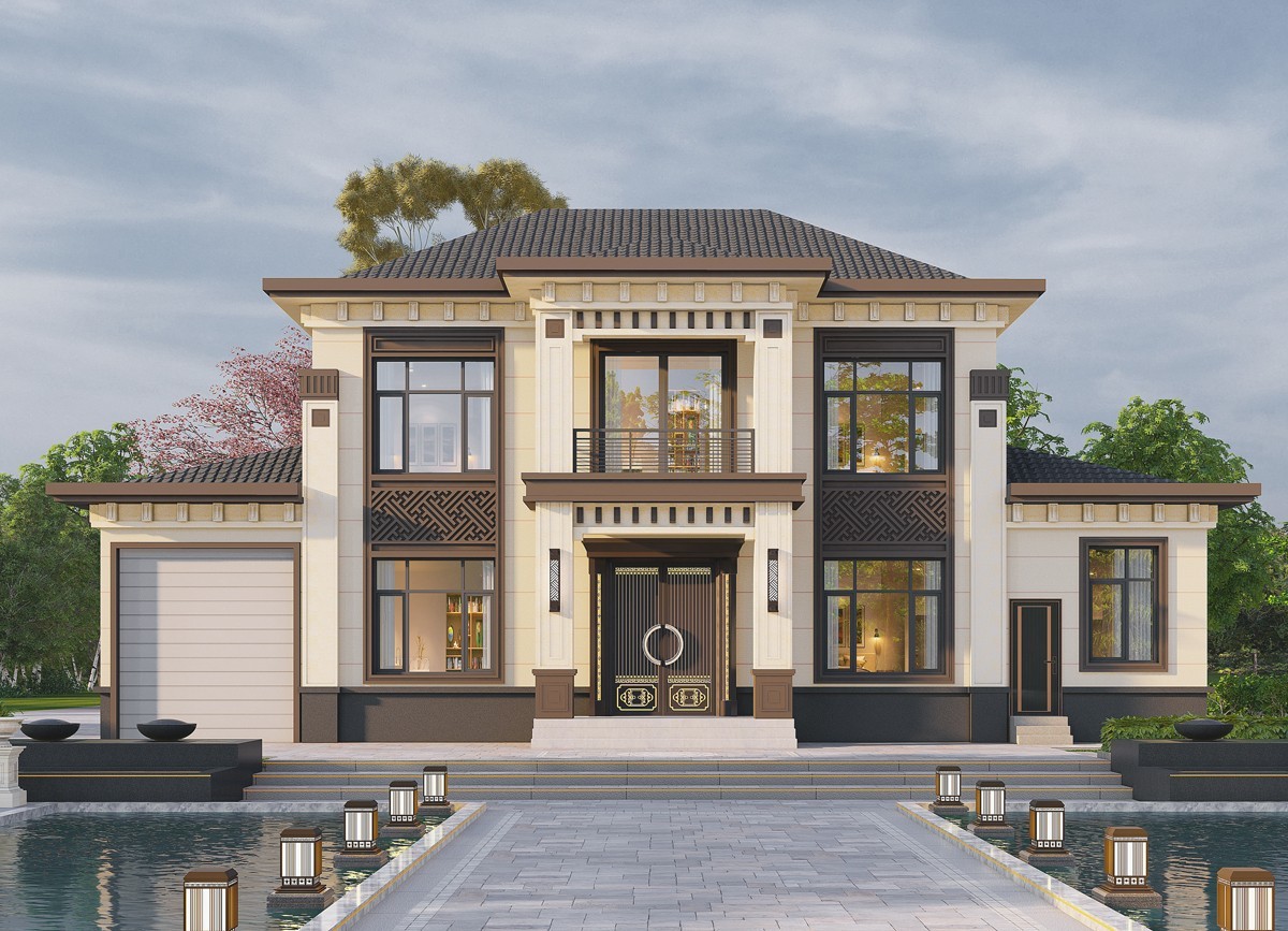 威海011 两层新中式(15.43x12.66米)-【易设计】