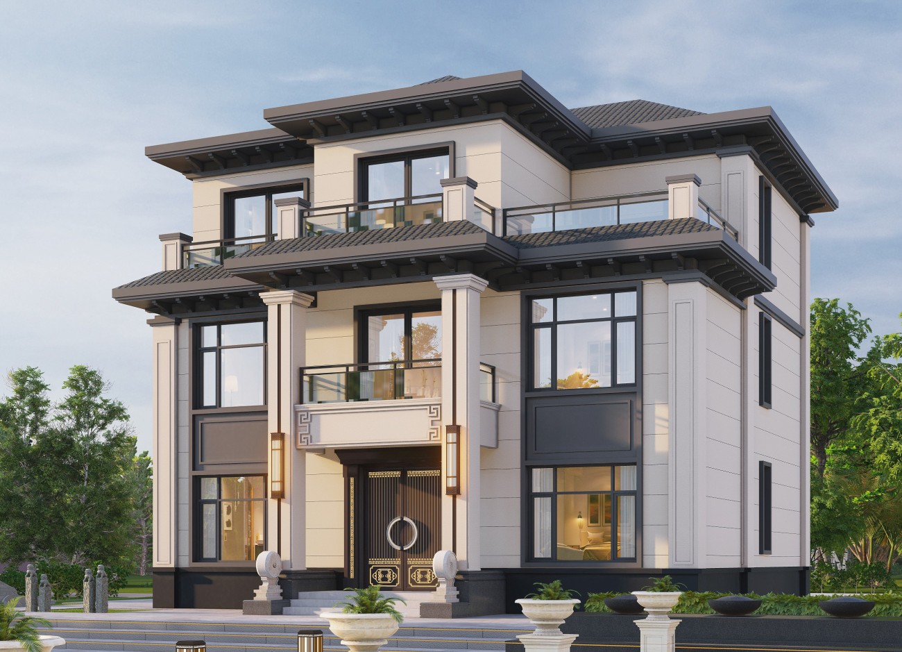 威海17 三层新中式(10x12米)-【易设计】